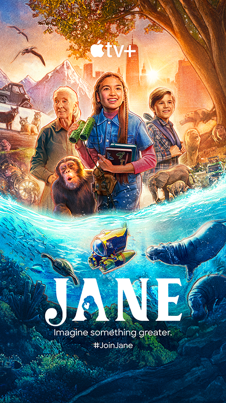 Jane is a show on an environmental mission. Inspired and produced alongside iconoclast Dr. Jane Goodall and her institute, Jane is a live action/CGI blended series that follows Dr. Goodall's 9-year-old namesake Jane Garcia. Young Jane feels powerless about what's happening in the world and, as a result, creates fantastical imaginative missions for her and her friends to embark upon to help endangered animals. Inevitably, these action-packed adventures spill into her real world, giving Jane an opportunity to open the eyes and change the minds of people in her community. Reminding the audience, as Dr. Goodall does, that "every individual can make a difference."